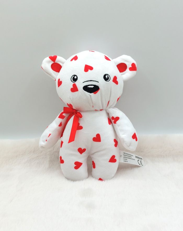 Peluche doudou ours blanc coeurs rouges ZEEMAN nœud rouge 20 cm - photo numéro 1