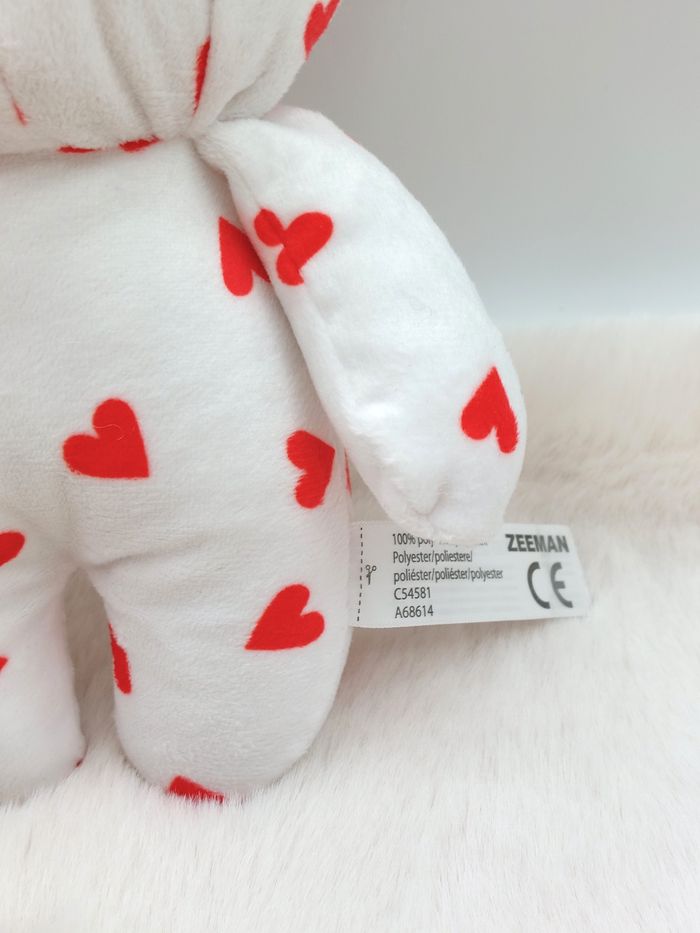 Peluche doudou ours blanc cœurs rouges ZEEMAN nœud rouge 20 cm Très bon état, lavé avant la vente Envoi rapide Réf A12349 #minotresor #peluche #doudou #plush #knuffel #comforter