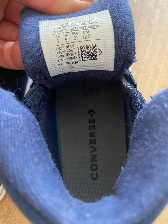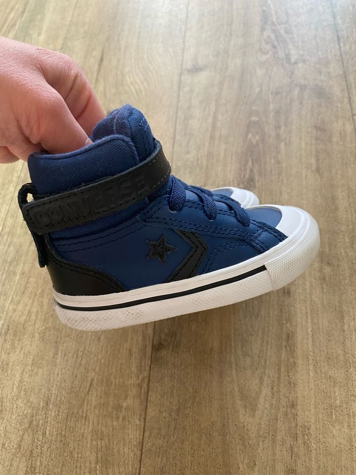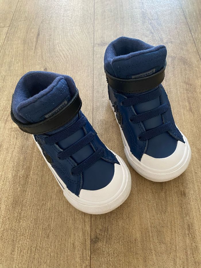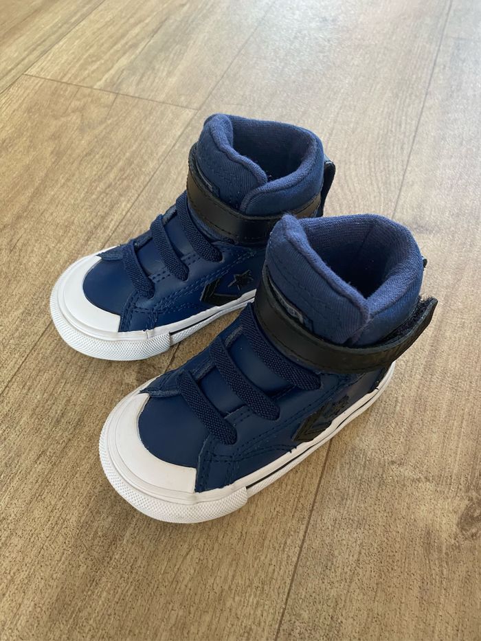 Converses bleu marine et noir Lacets élastiques et scratches Pointure 21 Porté quelques fois, en très bon état