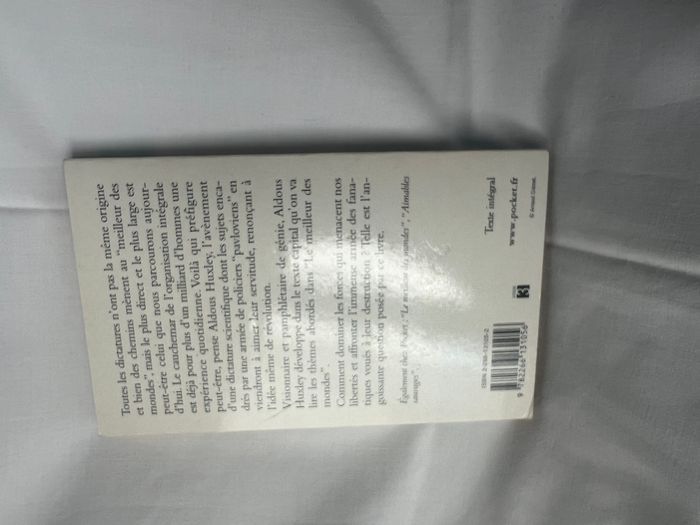 Livre - Retour au meilleur des mondes - Pocket - Aldous Huxley Toutes les dictatures n'ont pas la même origine et bien des chemins mènent au "meilleur des mondes", mais le plus direct et le plus large est peut-être celui que nous parcourons aujourd'hui. Le cauchemar de l'organisation intégrale est déjà pour plus d'un milliard d'hommes une expérience quotidienne. Voilà qui préfigure peut-être, pense Aldous Huxley, l'avènement d'une dictature scientifique dont les sujets encadrés par une armée de policiers "pavloviens" en viendront à aimer leur servitude, renonçant à l'idée même de révolution. Visionnaire et pamphlétaire de génie, Aldous Huxley développe dans le texte capital qu'on va lire les thèmes abordés dans "le meilleur des monde". Comment dominer les forces qui menacent nos libertés et affronter l'immense armée des fanatiques voués à leur destruction? Telles est l'angoissante question posée par ce livre.