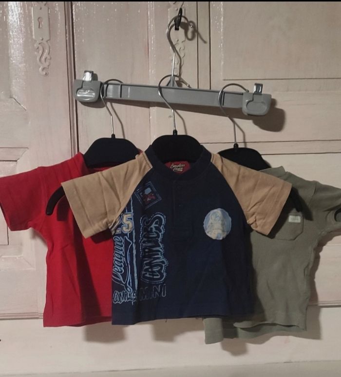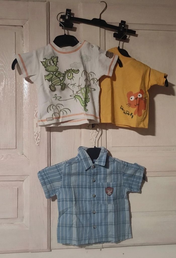 Ce lot contient 12 pièces : 3 teeshirt ( un légèrement taché voir photo), 1 chemisette, 1 pyjama, 3 polos, 1 pantalon léger. Plusieurs marques #cherokee #complicesbaby #kiabi #tometkiddy #tissaia #petitpirate
