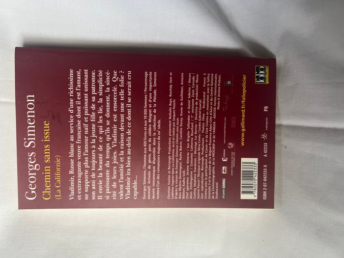 Livre - Chemin sans issue - Georges Simenon - Folio Policier Vladimir, Russe blanc au service d'une richissime et extravagante veuve française dont il est l'amant, ne supporte plus l'amour naïf et puissant unissant son ami de toujours à la jeune fille de sa patronne. Il envie la beauté de ce qui les lie, la simplicité si puissante du temps qu'ils se donnent, la sincérité de leurs joies. Vladimir est ensorcelé. Que valent l'amitié et la raison devant une telle folie ? Vladimir ira bien au-delà de ce dont il se serait cru capable...