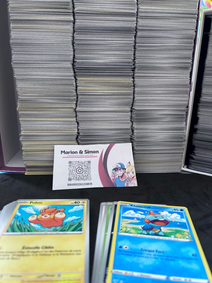 Carte Pokémon - Lot co/unco/dresseur + brillantes reverses offertes. Bonjour, Merci de pas acheté l’annonce. Lot de cartes Pokémon officiel : * 100 + holographiques et reverses offertes = 0,09cts * À partir de 500 = 0,05/u soit 25€ * À partir de 1000 = 0,04 cts/u soit 40€ * Différentes séries surtout du EB ( 11,12,12•5 ect ) & EV ( 1, 2, 3, , 4, 4.5, 5, 6 6.5, 8 ) . * Holo et reverses offertes * Présence de double voir plus. * Envoi soigner et protéger. * Plusieurs lots vendus sur différentes plates-formes E et V, LBC. • Pokébox vide disponible 2€, ETB, 2€, Mini Tin Vide 1 € Besoin d’un lot sur mesure + 1000 cartes ? Des questions, des photos supplémentaires contactez-nous. N’hésitez pas !