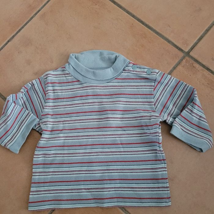 Tee-shirt Tout Compte fait 12 mois rayé col montant. Très bon état