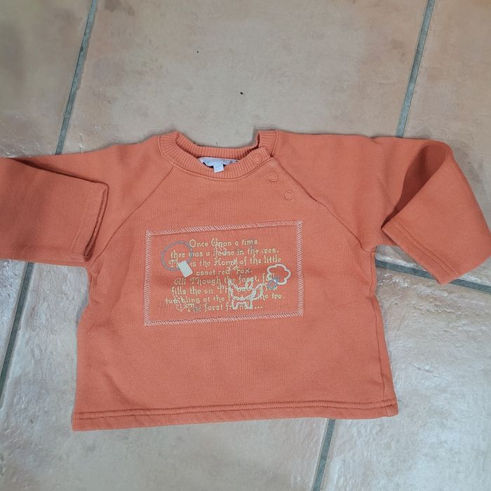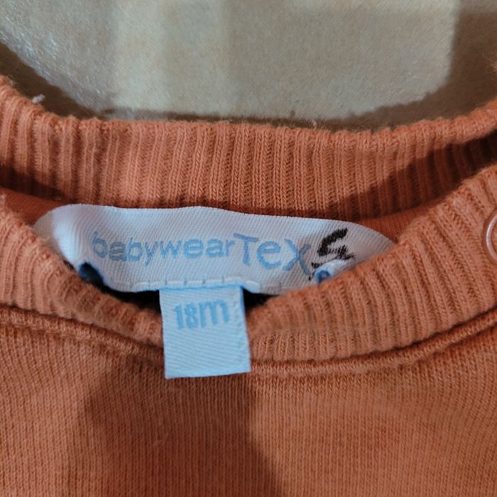 Sweat Tex 18 mois Orange. Très bon état. Aucun trou ni tâche. Envoi dans la journée en mondial relay ou chronoshop2shop.