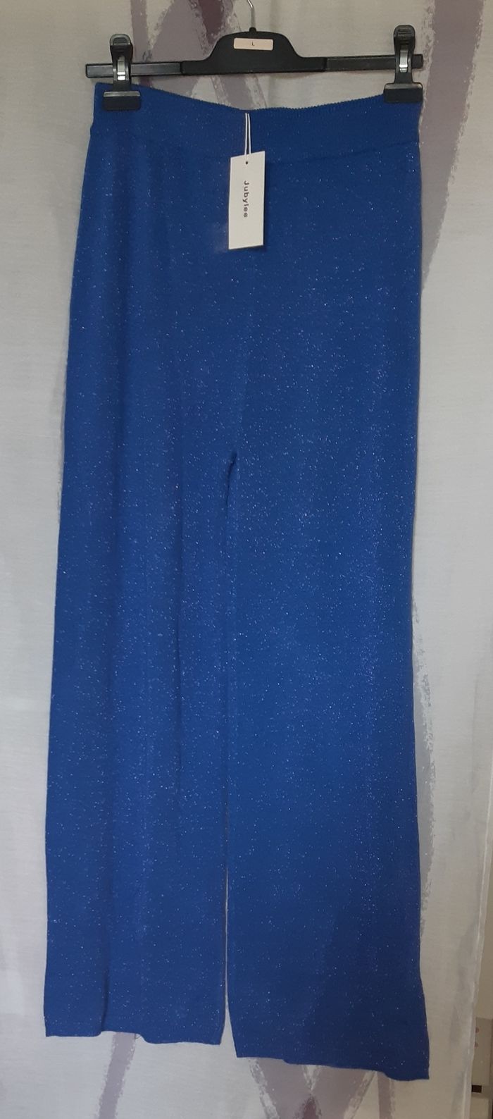 Pantalon femme Taille unique Jubylee Bleu à paillettes Un peu transparent Neuf avec étiquette