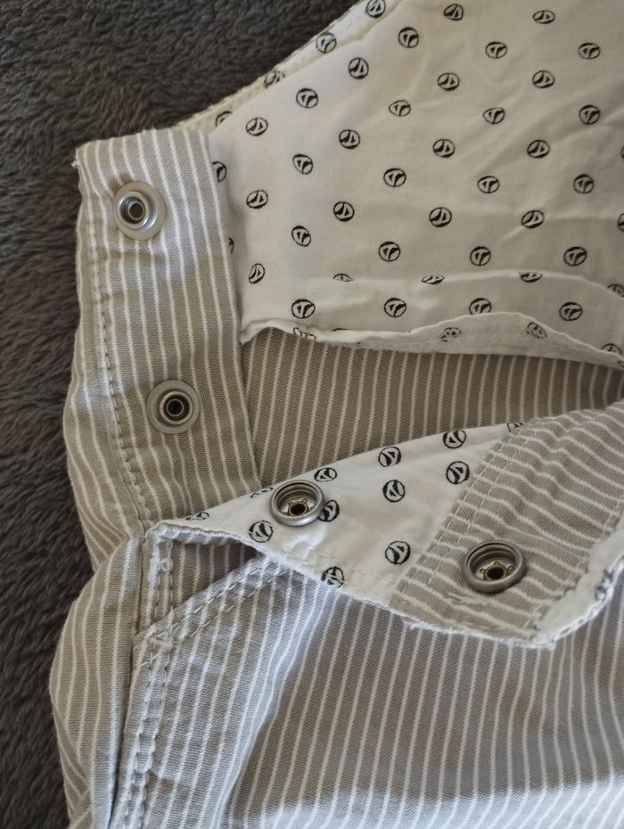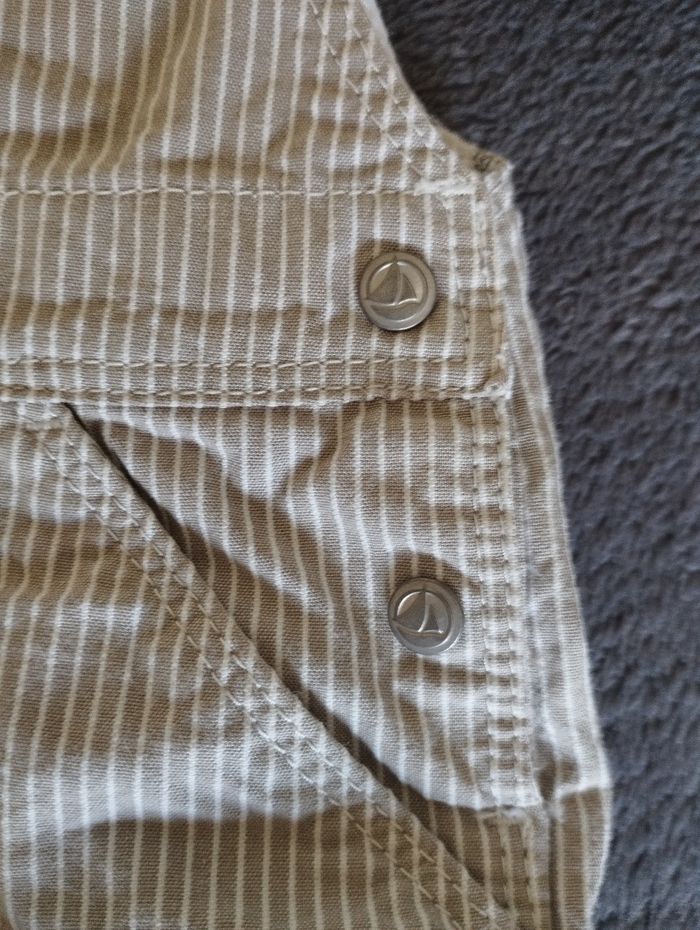 Salopette à rayures de couleur taupe clair, de marque Petit bateau, pour bébé garçon. 📏 24 mois, 86 cm 📍Comme neuve, portée quelques heures seulement, pour une cérémonie #MissSandrine24mois
