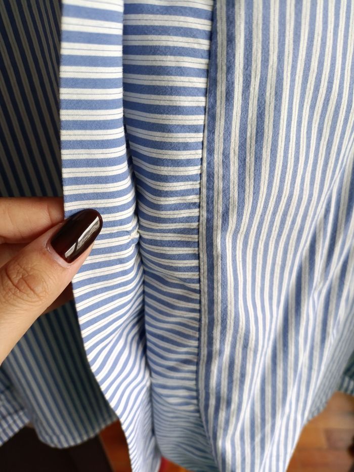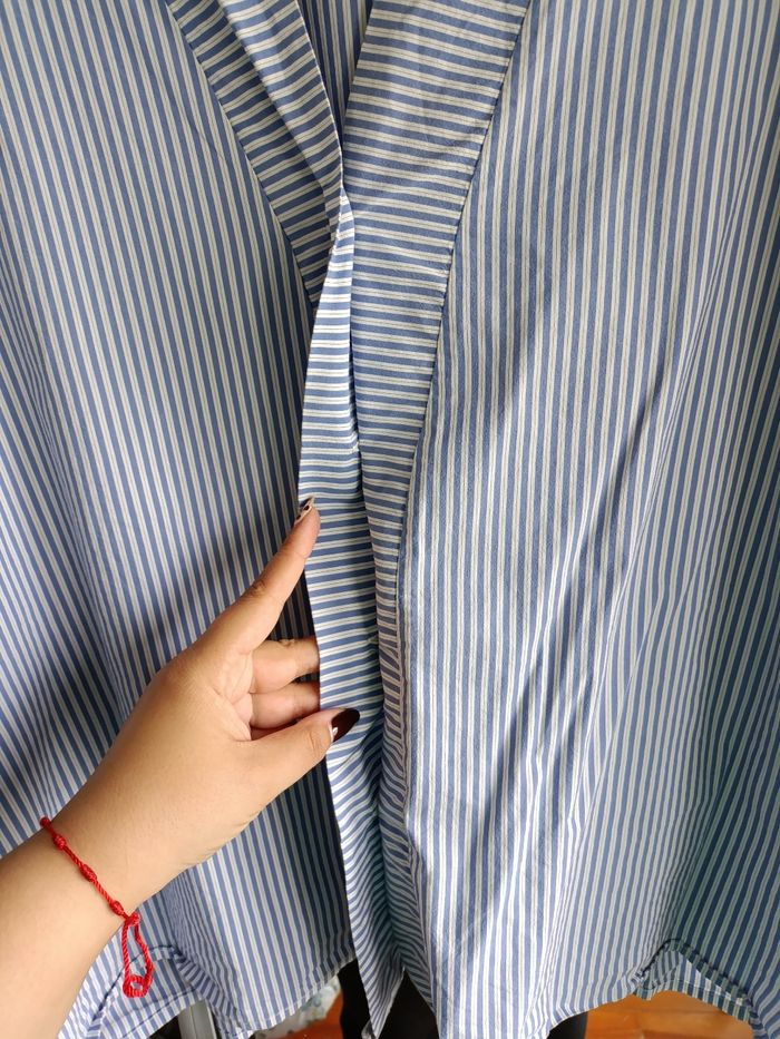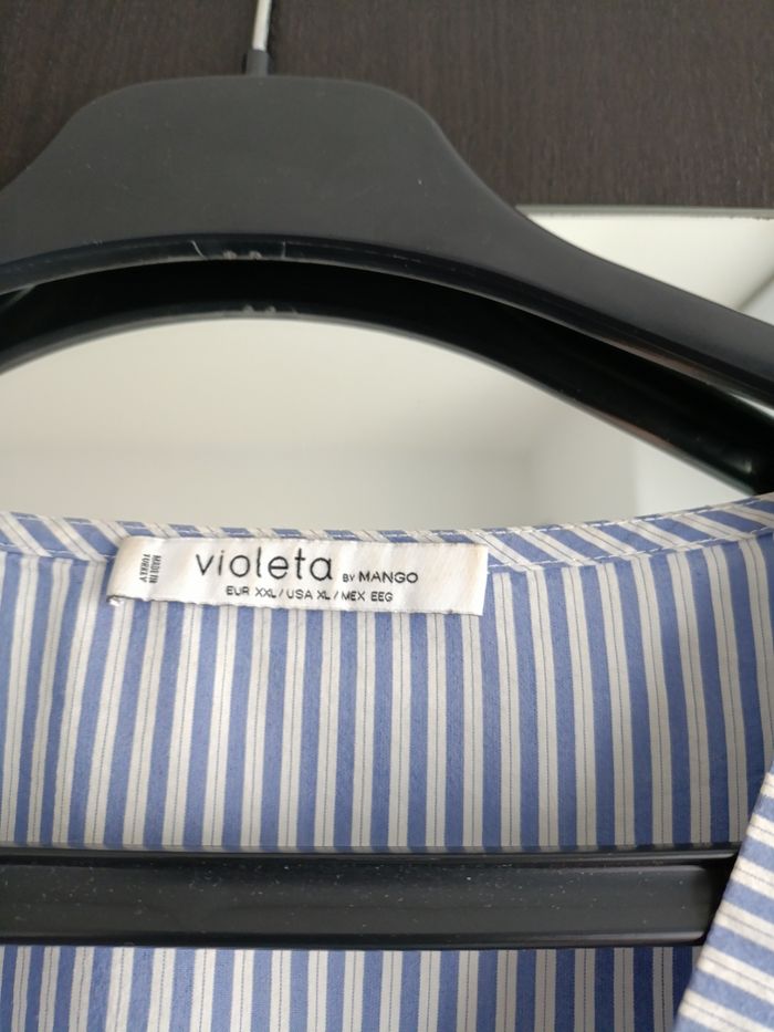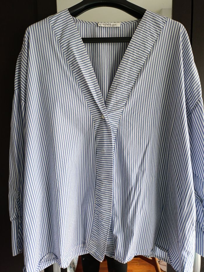 Chemise bleue et blanche de Violeta bay Mango. Je l'ai utilisé deux fois.