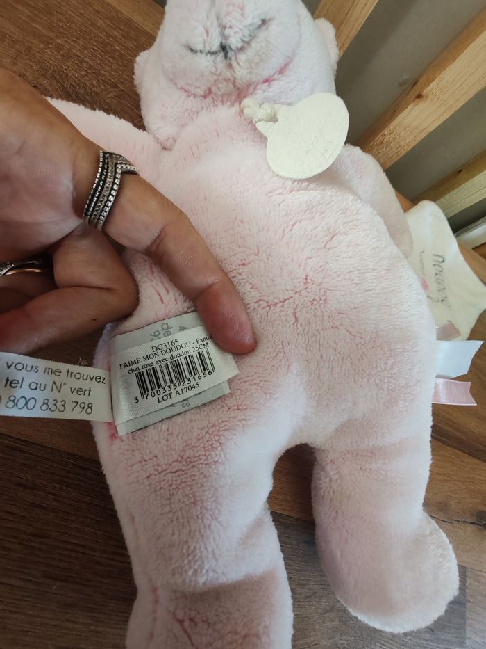 Doudou et compagnie J'aime mon doudou Peluche chat rose Tbe Étiquette marque présente 15 euros envoi en relais
