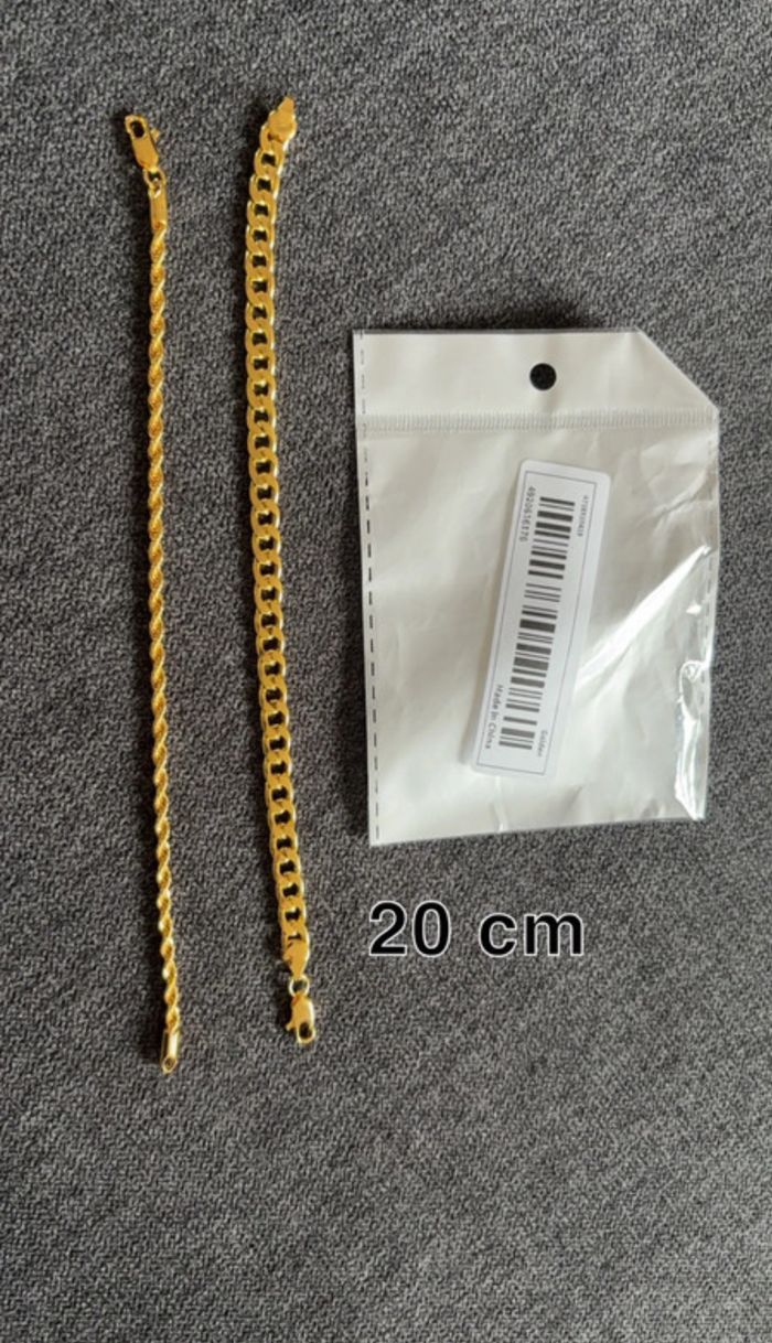 Bonjour bonsoir Je vend ces deux bracelets 20cm chacun Couleur doré Envoie rapide et soigner