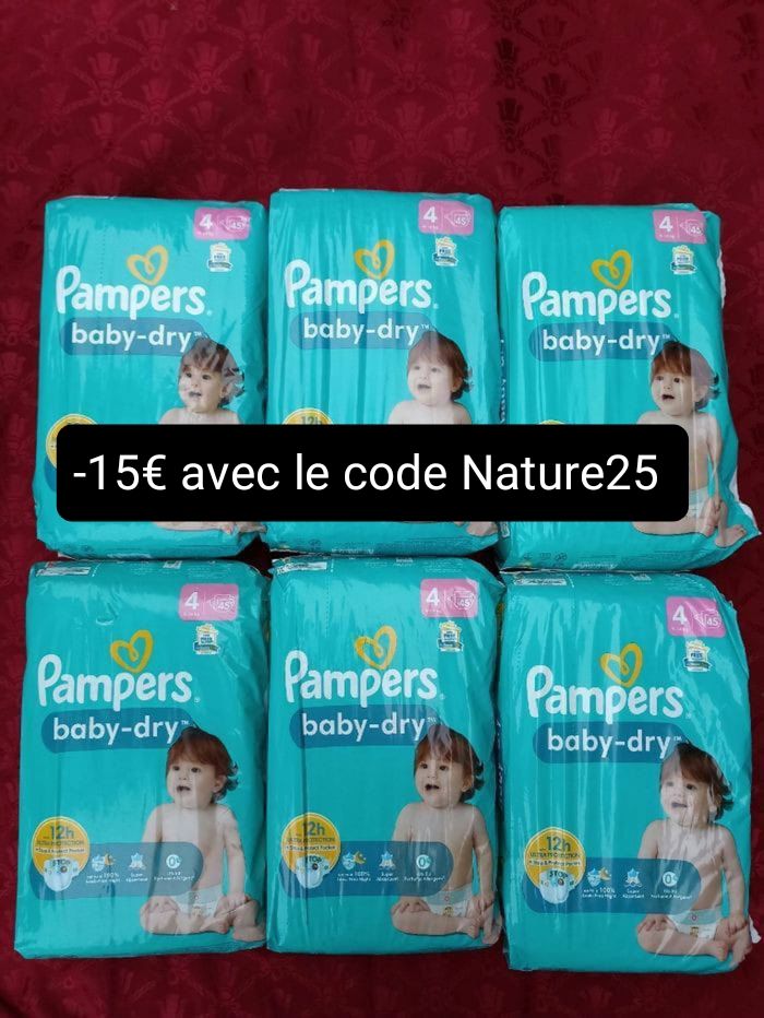 Lot de six paquets couches Pampers baby-dry T4 taille 4