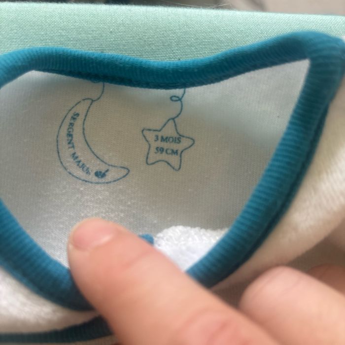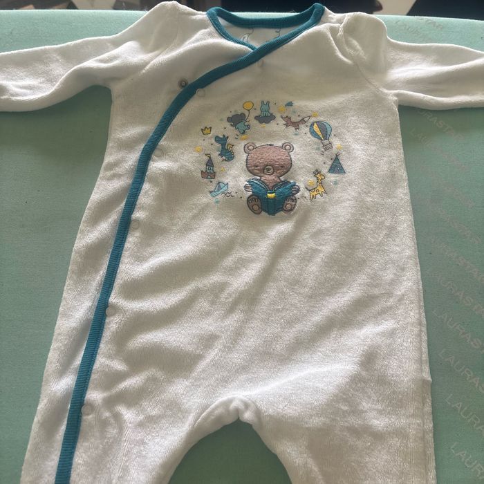 Vends pyjama de marque sergent major taille 3 mois en très bon état Il est blanc avec motifs sur de devant et ouvertures boutons sur le devant