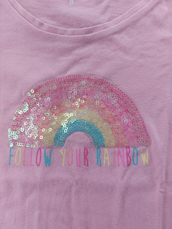 T-shirt rose avec arc en ciel - photo numéro 3