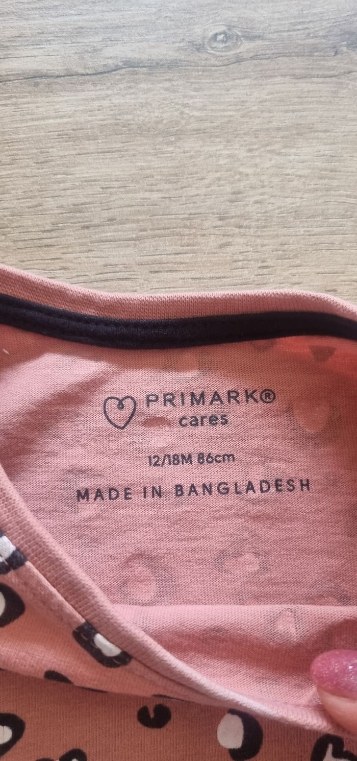 T-shirt à manches courtes à motifs léopard Primark taille 12-18 mois Très bon état