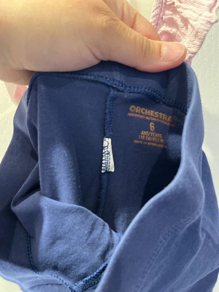 Débardeur et legging court sur le legging l’écriture intérieur à déteins voir photos taille 6 ans marque kiabi et orchestra. Ne se voit pas avec un haut par dessus