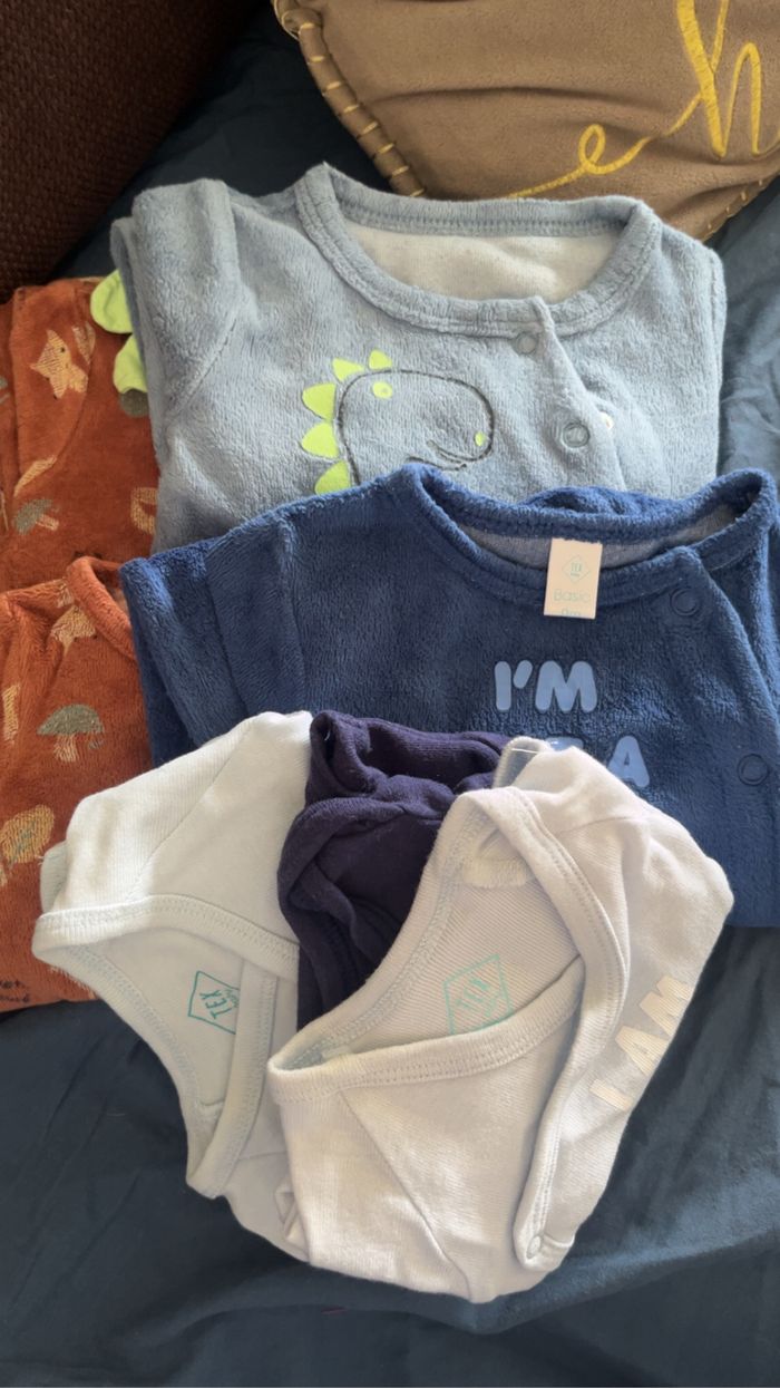 4 pyjamas et 3 bodys en bon état