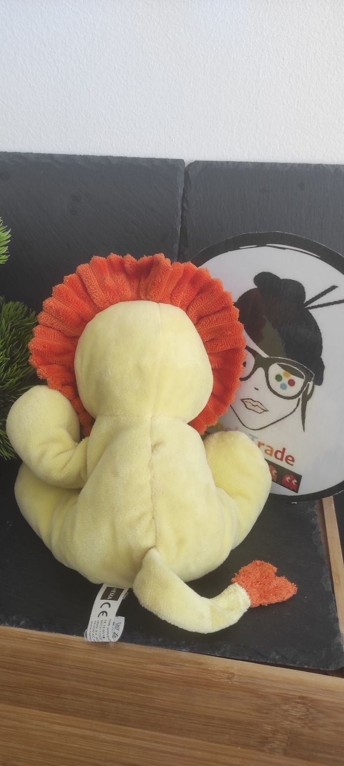 doudou peluche lion jaune blanc Gris 4 Pattes Hema - photo numéro 2