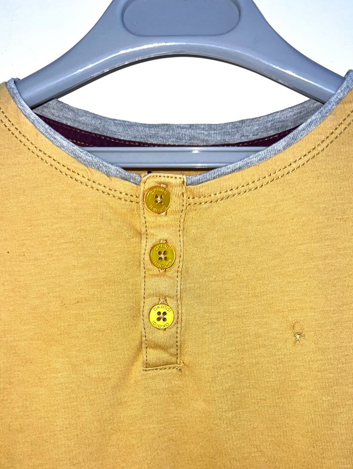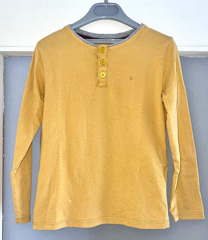 T-shirt à manches longues Polo Marque Okaidi 6 ans 116 cm Coloris moutarde Col rond 3 boutons devant Matière douce Léger point blanc au bas Maison non fumeur et sans animaux 📩Je réponds rapidement aux messages 📦Envoi rapide et soigné