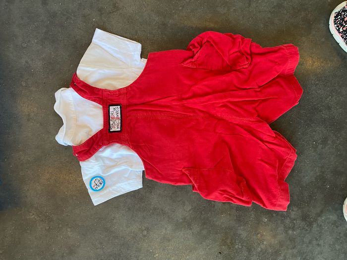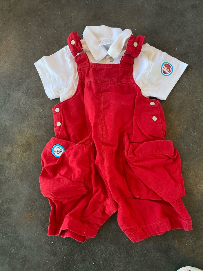 Joli ensemble polo blanc et salopette courte rouge 6 mois en TBE Miniman