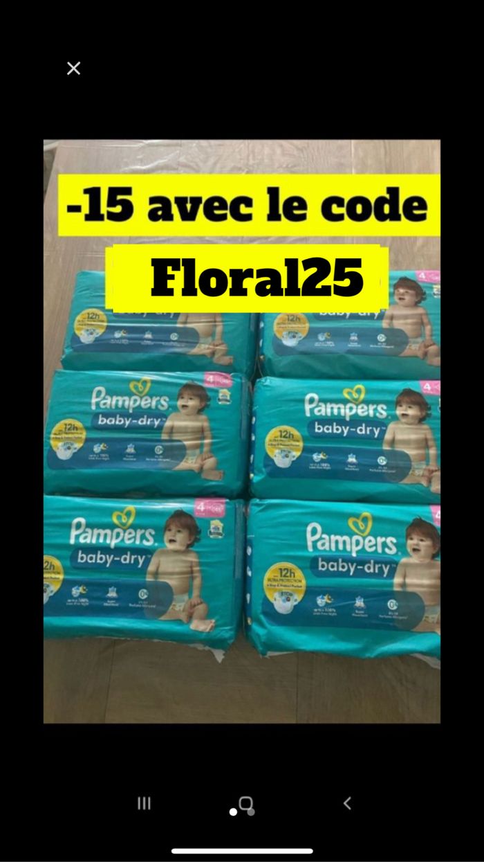 Le lots de six paquets de couches pampers baby dry taille 5 neufs -15€ avec le code promo