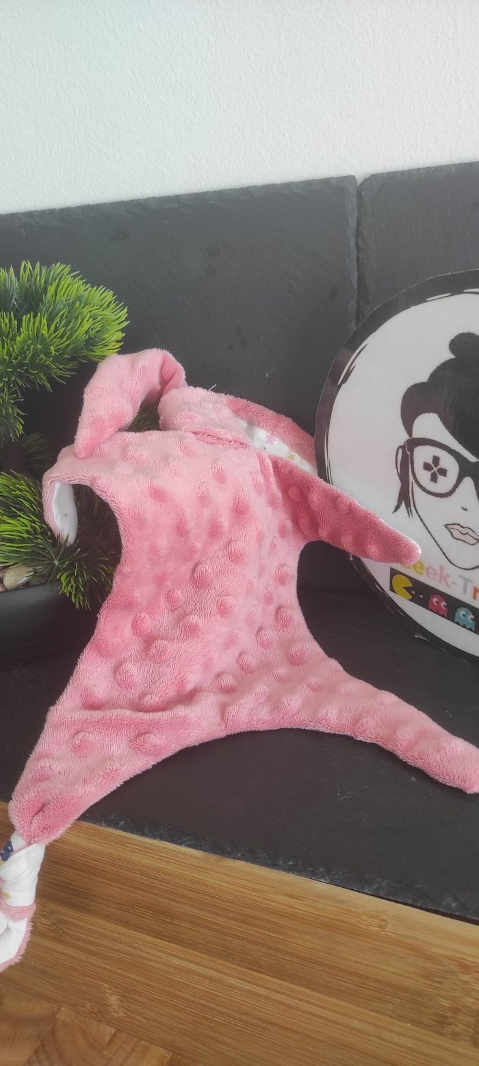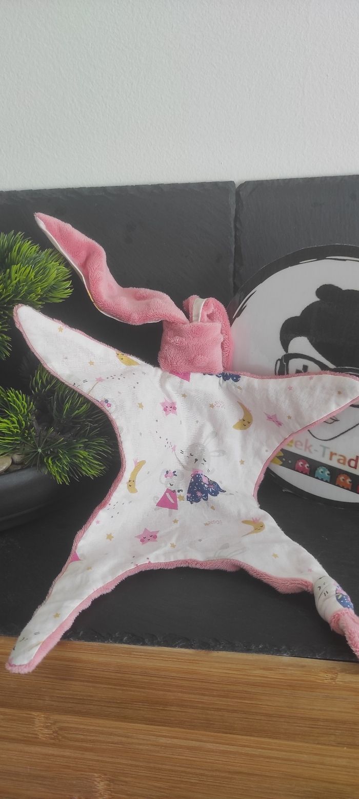 doudou nin-nin rose blanc souris lapin etoiles lune fée Baguette Bleu Jaune - photo numéro 1