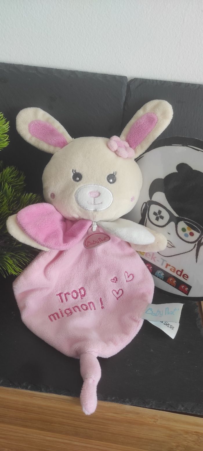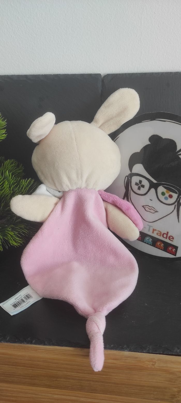 Doudou lapin rose Trop Mignon Kawaii coeur bn0152 baby nat blanc beige fleur - photo numéro 1