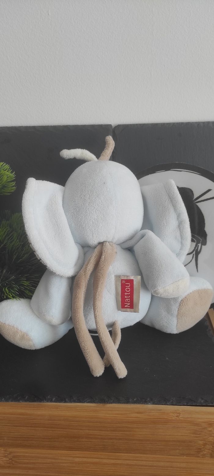Doudou musical éléphant bleu beige peluche nattou croix marron blanc - photo numéro 1