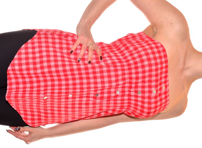 top bustier dos nu élastiqué rouge carreaux blanc taille M/L - photo numéro 7