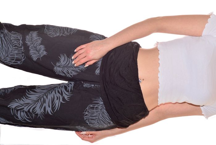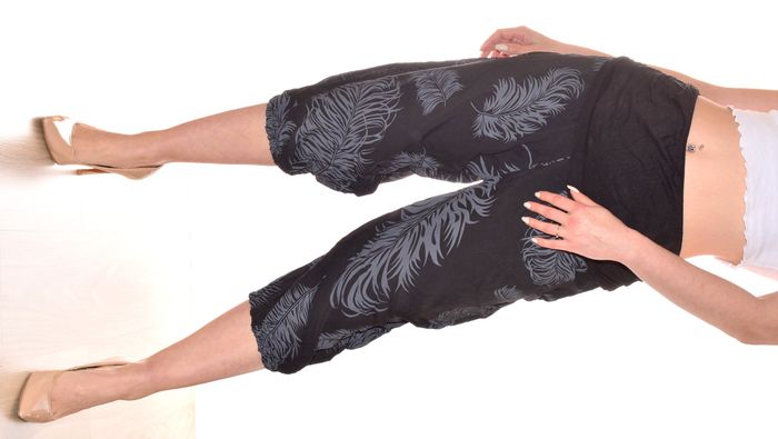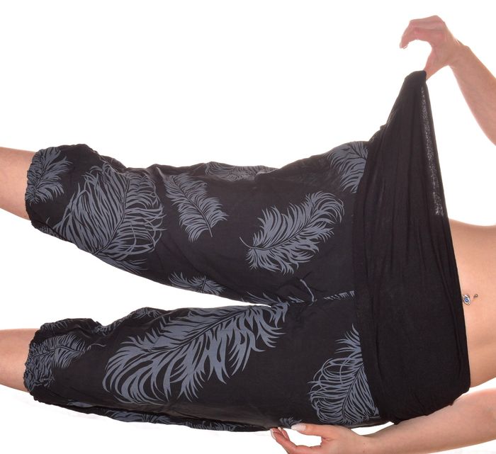 pantacourt sarouel jambe larges taille L-XL motif feuillage élastiqué gris et noir - photo numéro 7