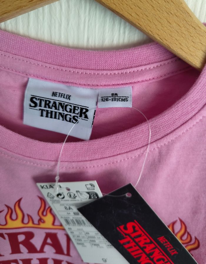 👧 T-shirt à manches courtes, imprimé "Stranger Things". 👧 Taille 8 ans (126-131cm) 👧 Marque : Kiabi 👧 Neuf avec étiquette