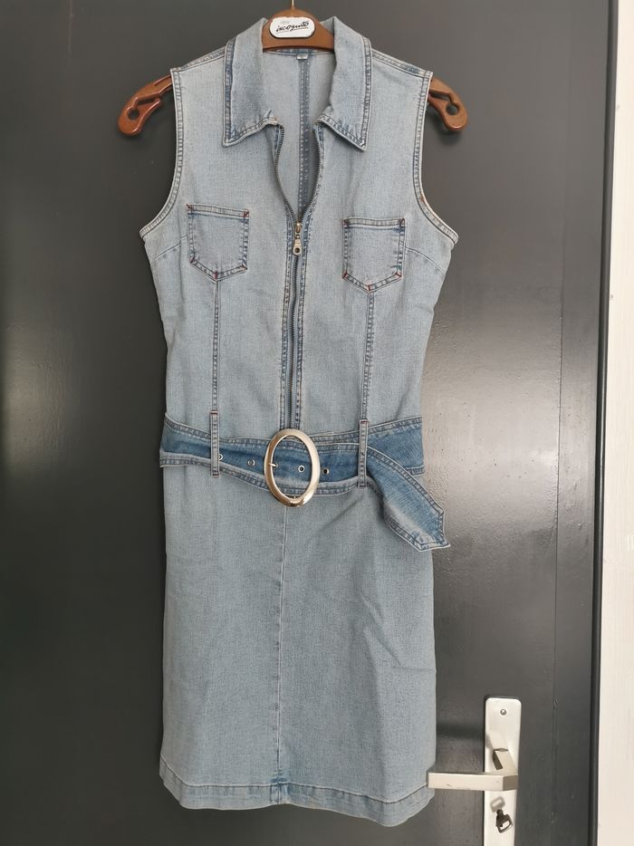 Robe stretch zipper avec ceinture boucle, peu portée, marqué taille L mais ce n'est pas une taille européenne, correspond à un 36 /38
