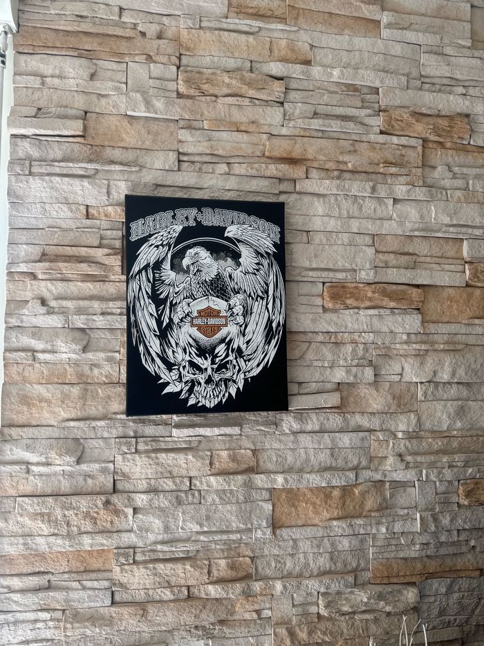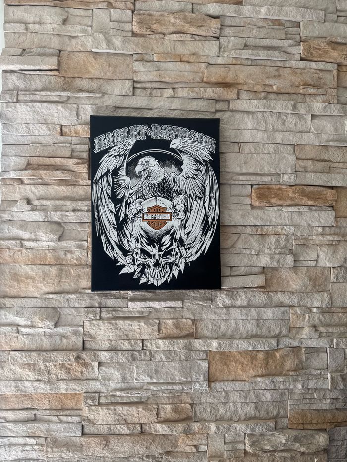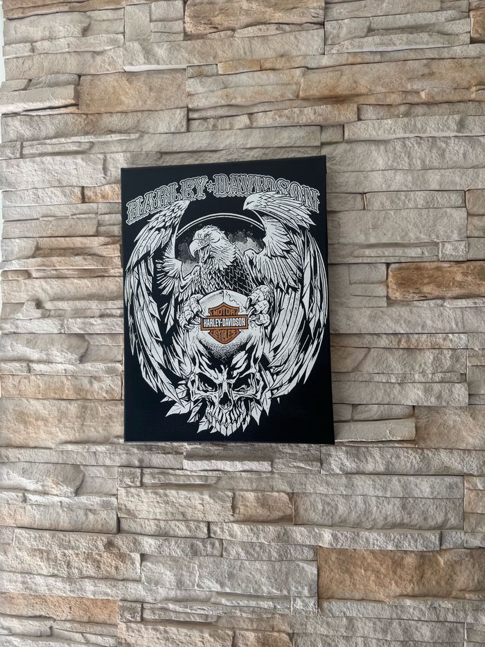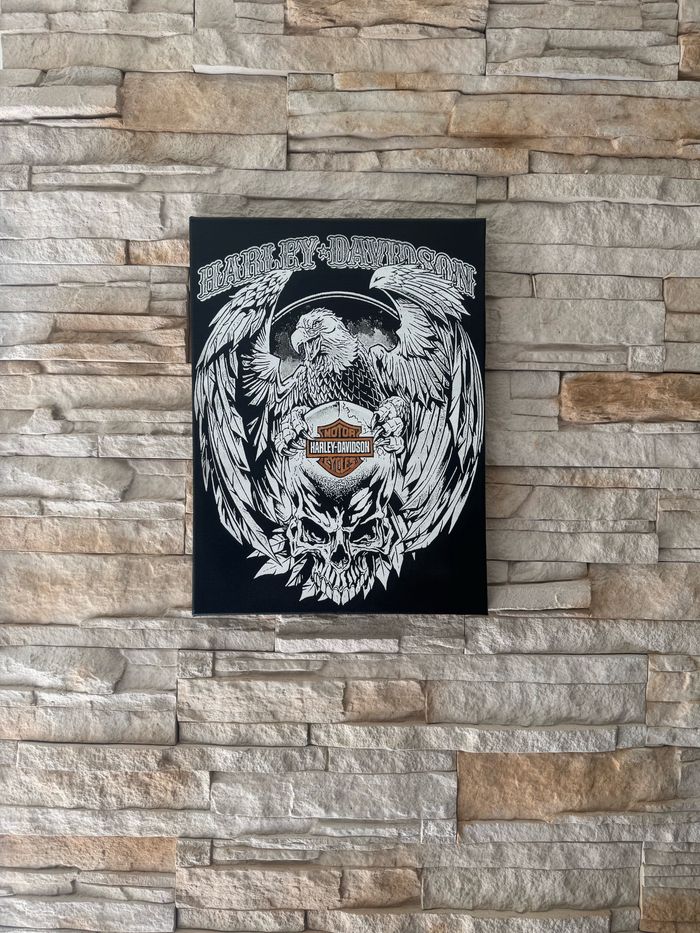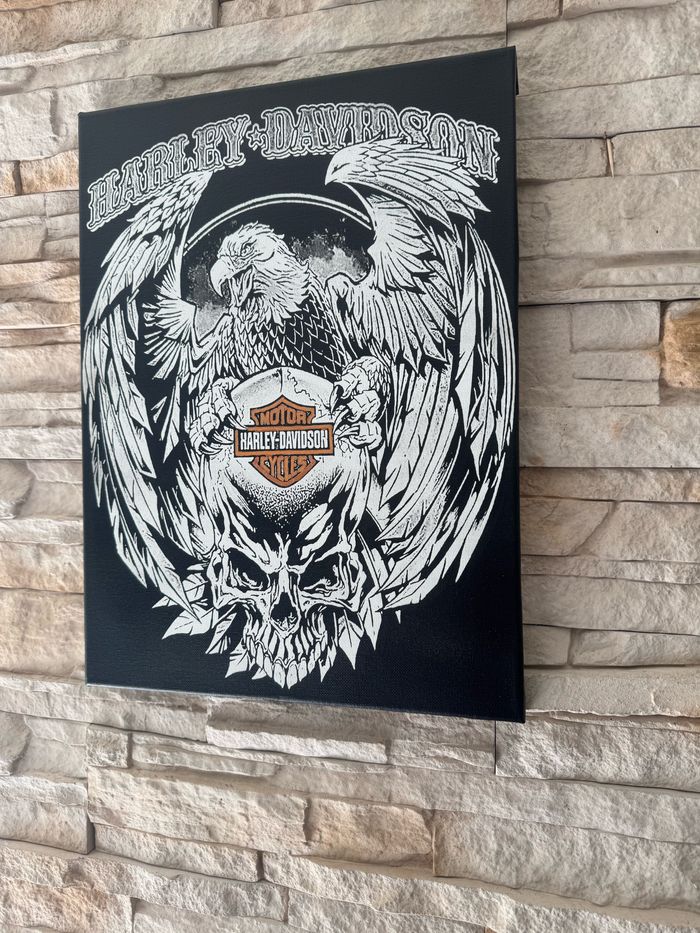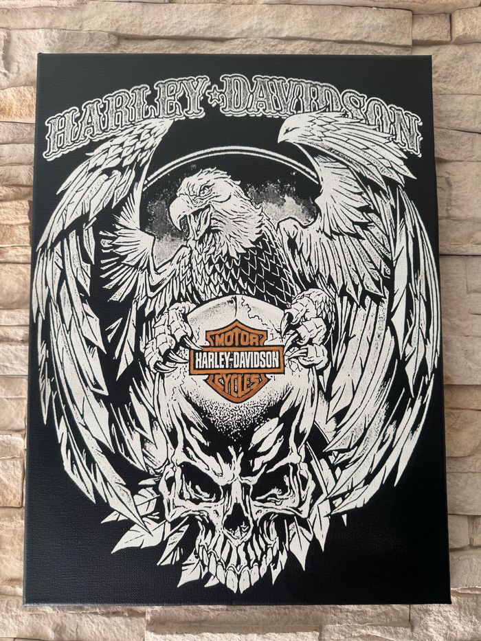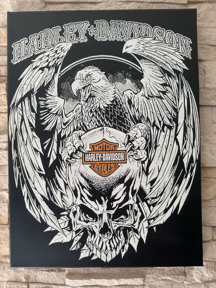 Tableau en toile 30x40cm Harley Davidson en monochrome noir et blanc .. Idéal décoration motard et amoureux de la marque américaine