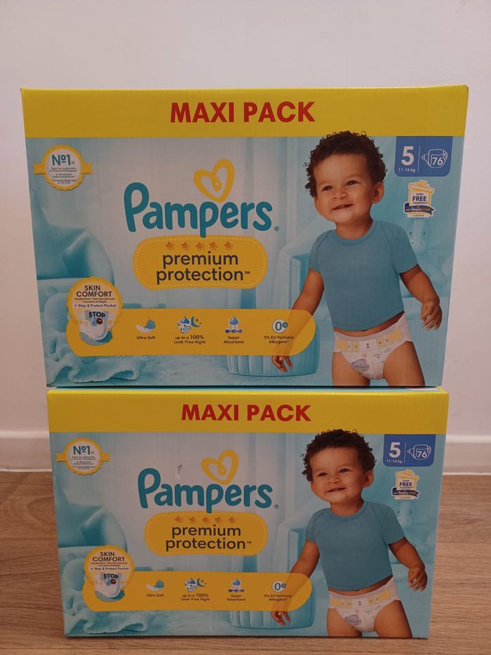 Couches Pampers premium Taille 5 / 11 à 16 kg carton de 76 couches Lot de 2 cartons
