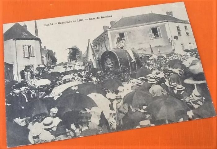 Carte postale ancienne  Candé (Maine-et-Loire)  Cavalcade de 1906  Char de Bacchus