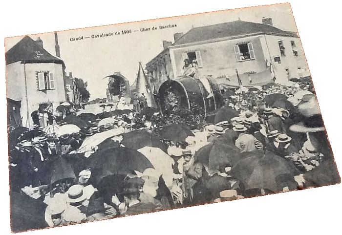 Carte postale ancienne Candé (Maine-et-Loire) Cavalcade de 1906 Char de Bacchus