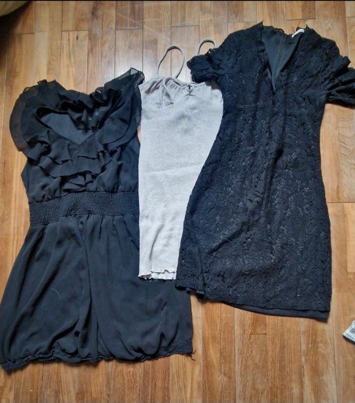 Lot de x3 robes 1 robe noire à dentelle New Look sans manches 1 robe noire à manches courtes dentelles MANGO 1 robe beige BERSHKA