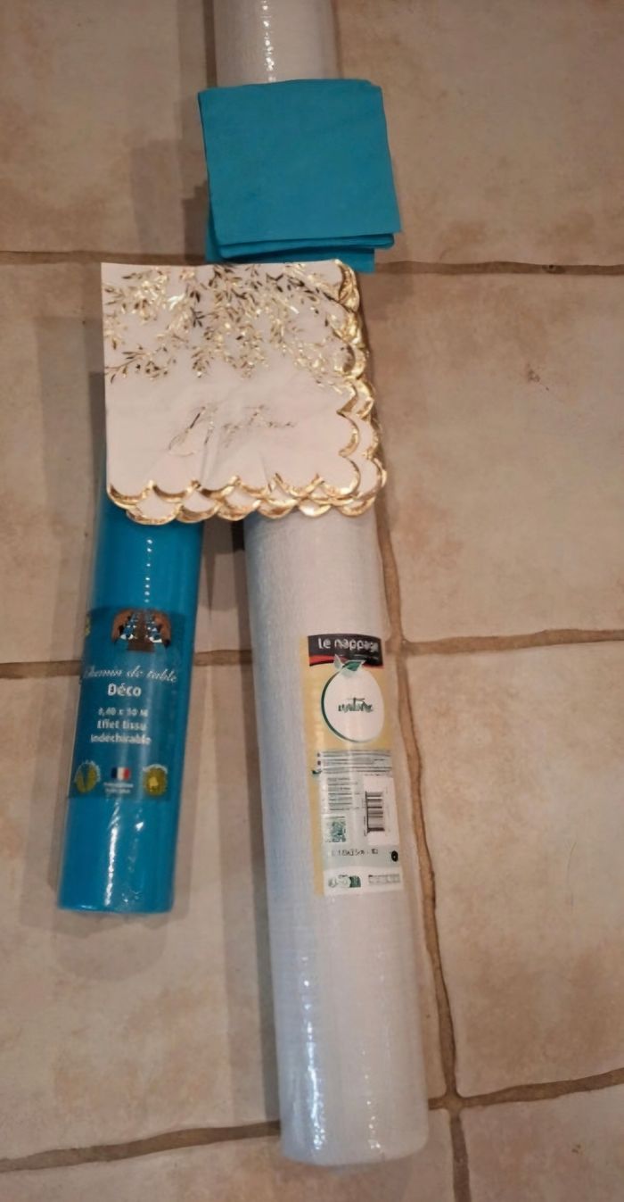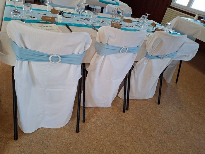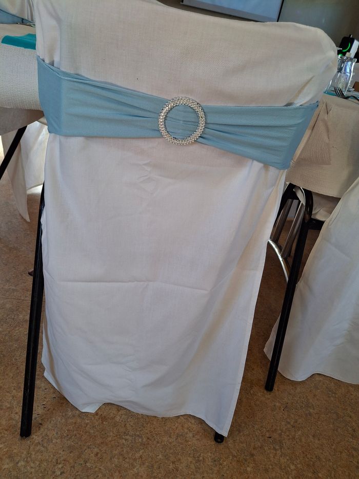 Décoration de baptêmes, 35 housses de chaise. 35 bandeau de chaise Décoration de table Nappage neuf Tout a été utilisé 1 seule fois, état neuf Le tout 90€