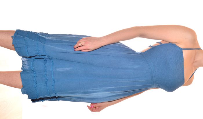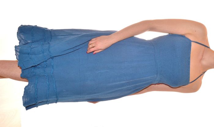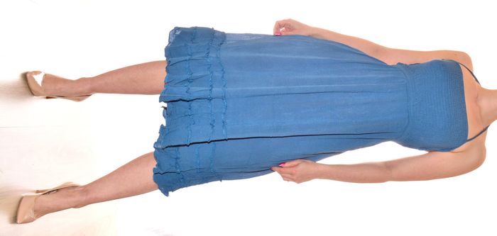 jolie robe bleue uni taille S/M mi-longue dos nu élégante col carré - photo numéro 7