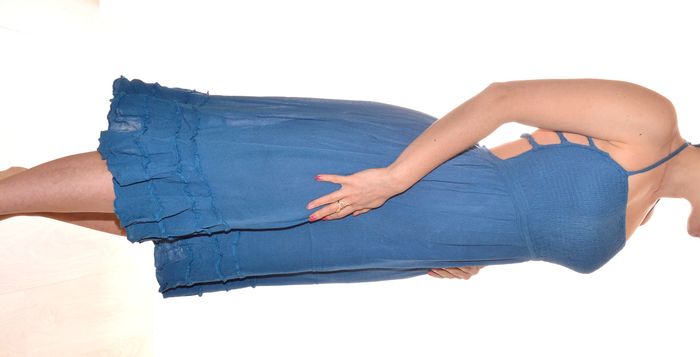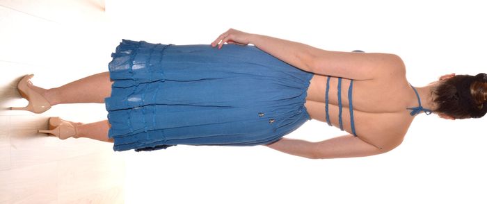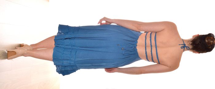 jolie robe bleue uni taille S/M mi-longue dos nu élégante col carré - photo numéro 4