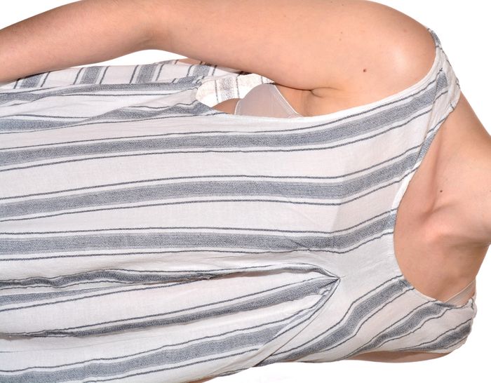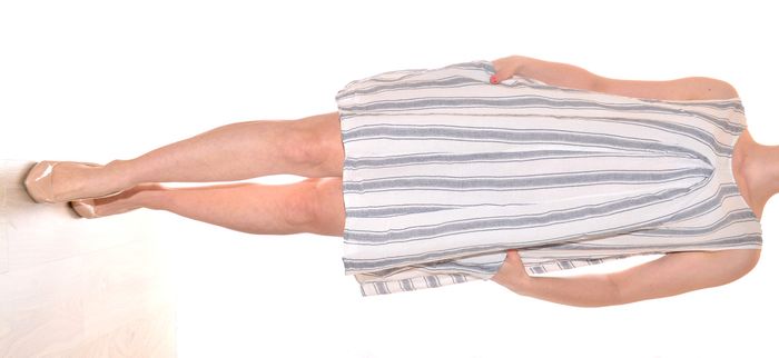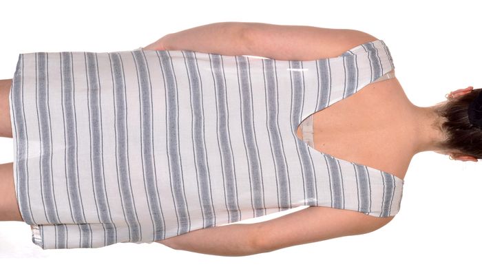 robe d'été plage vacance fluide blanche et gris clair décontractée col rond sans manches taille XL dos semi nu aisselle à aisselle 49 cm au niveau de la taille 59 cm hanche 62,5 cm largeur du bas 71,5 cm longueur 85 cm poches