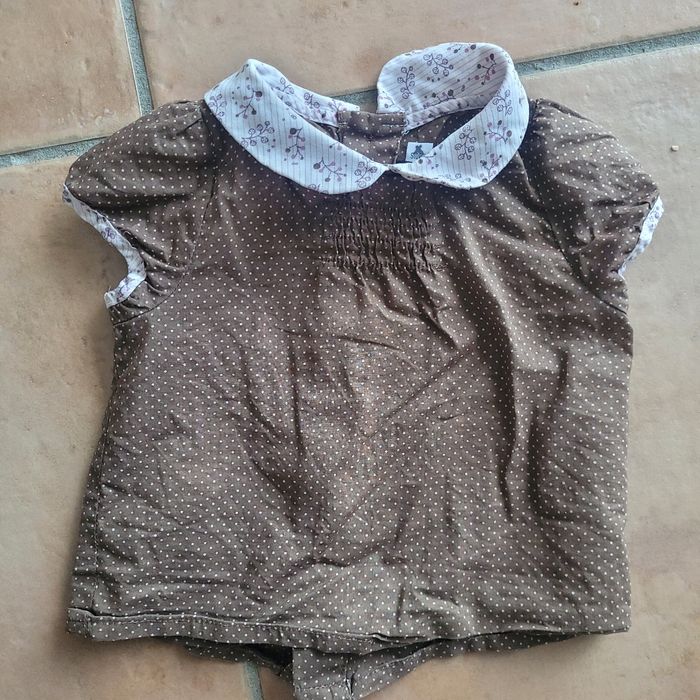 Blouse Sergent Major 6 mois marron pois blanc. Très bon état. Envoi dans la journée en mondial relay ou chronoshop2shop