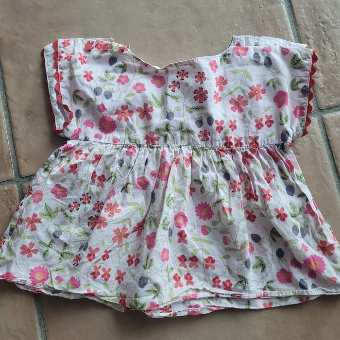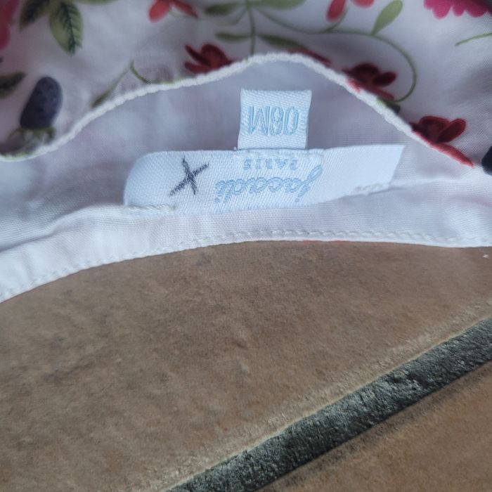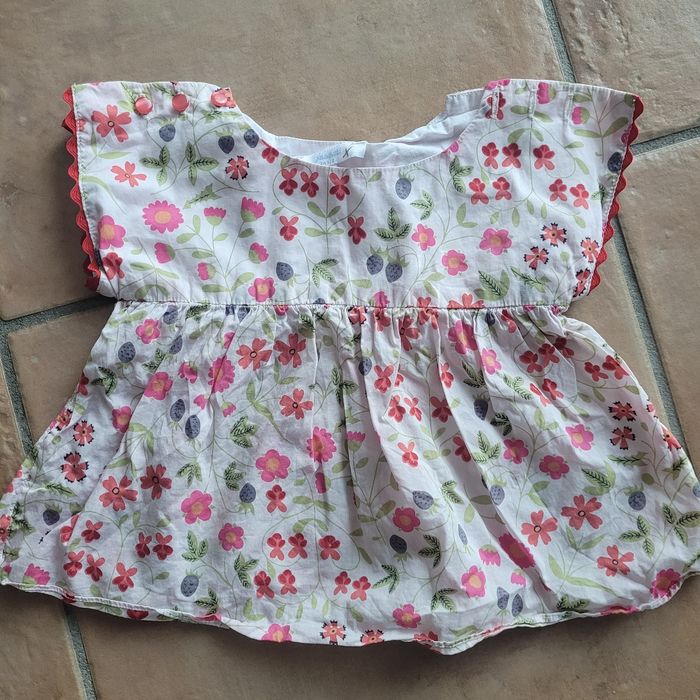 Blouse Jacadi 6 mois motif fleuri. Ouverture par boutons sur épaules. Très bon état. Envoi dans la journée en mondial relay ou chronoshop2shop