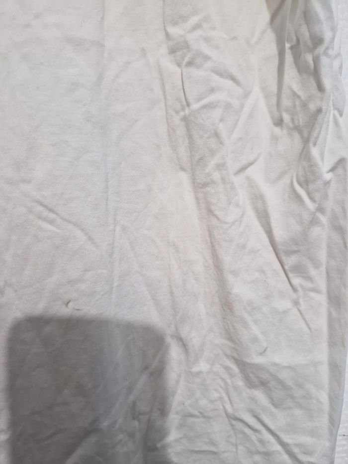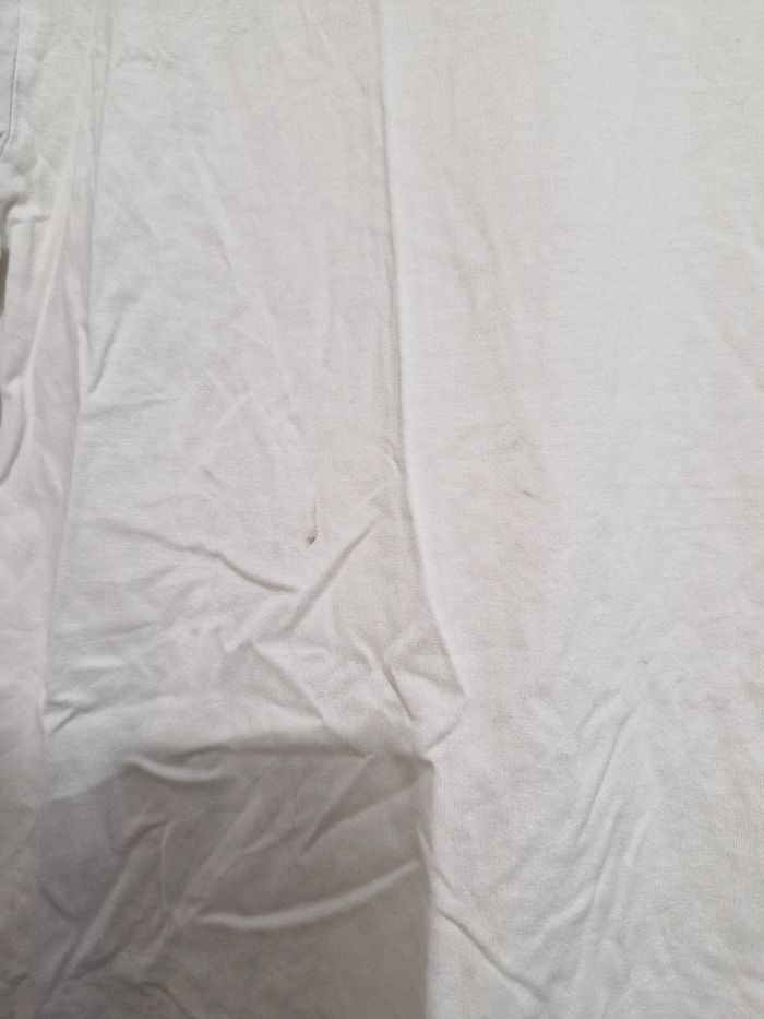 T-shirt homme taille L Sorti du carton alors quelques petites trace sur devant est au dos mais ils sont minime sa seras à relavé c'est du a la bradrie (VOIR PHOTO). Le vêtement est original je n'ai plus le ticket caisse .