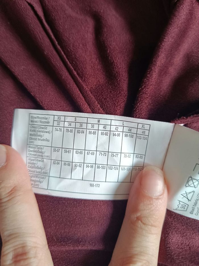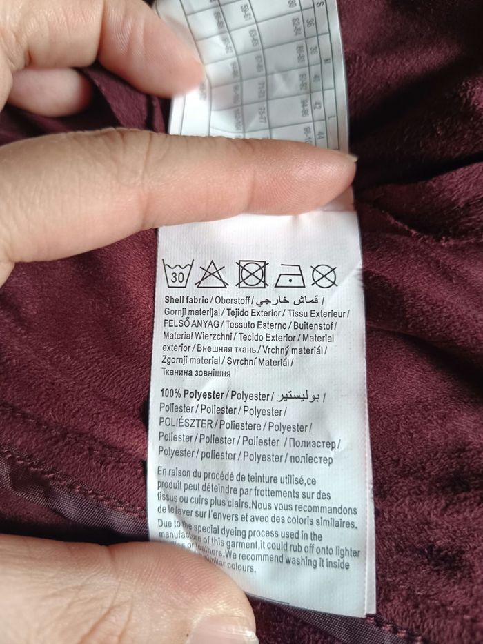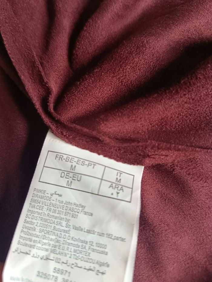 🌷 Descriptif du vêtement 🌷 Jolie veste suédine de couleur bordeaux. En très bonne état malgré une micro tâche discrète (cf photo) Matière : 100% polyester Mesure : épaule : 38 cm / hauteur : 55 cm 🛍️ Découvrez dans mon dressing une toute une sélection de vêtements dans votre taille 💸 Et profitez de réductions irrésistibles à partir de 2 articles achetés. Les négociations sont possibles, dans la limite du raisonnable.