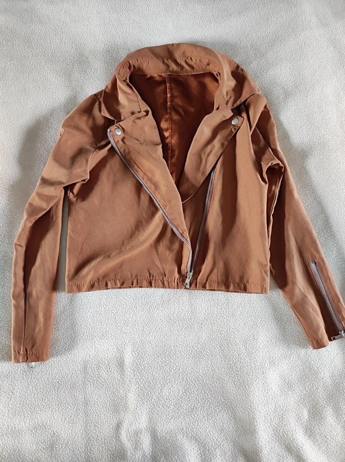 Peu portée, en très bon état. Légère. Fermeture sur le côté. On peut attacher le col sur les côtés avec les boutons pression. Couleur Camel.
