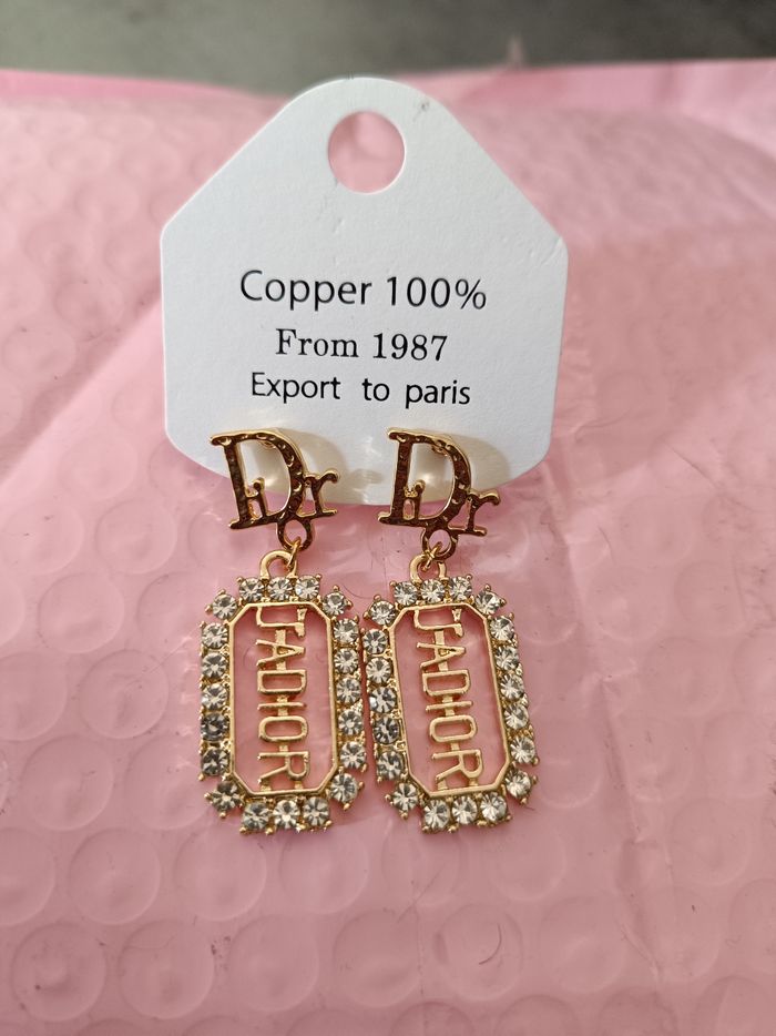 Boucle d'oreille pendantes très légère doré et strass argenté copper 100%