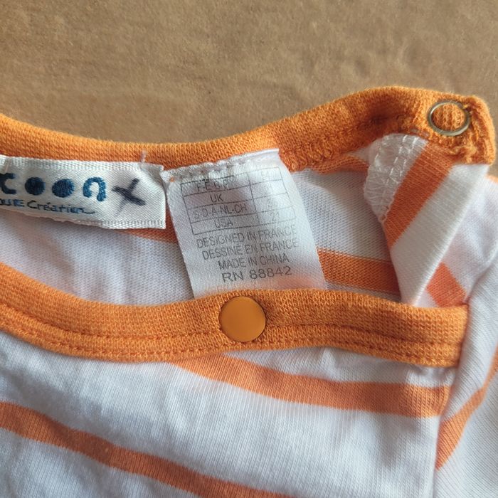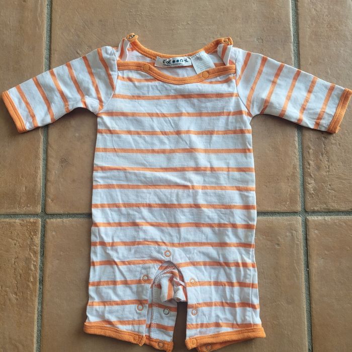 Combinaison Cocoon 1 mois mixte rayée blanc et orange. Très bon état. Envoi dans la journée en mondial relay ou chronoshop2shop