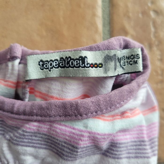 Robe TAO 18 mois rayée mauve. Matiere tee-shirt. Très bon état. Envoi dans la journée en mondial relay ou chronoshop2shop.