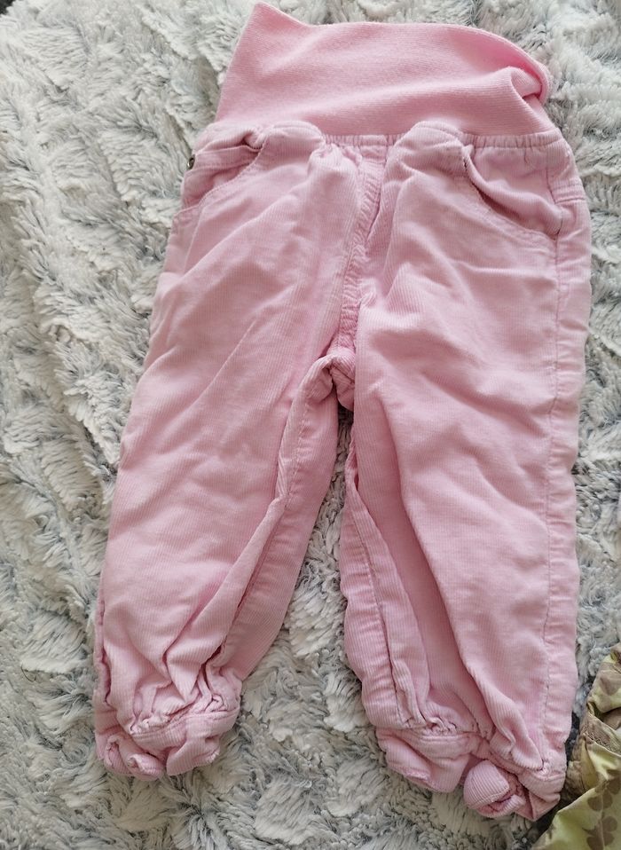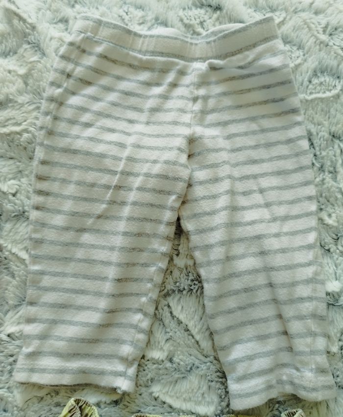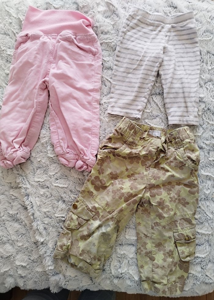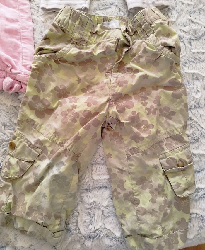 1 pantalon à fleurs kaki 1 pantalon rose, taille élastique 1 pantacourt coton à rayures
