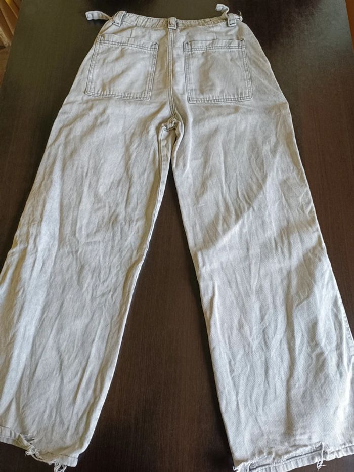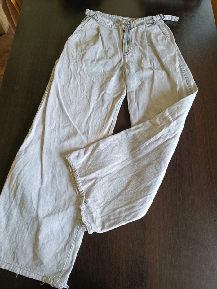 Jean large PULL & BEAR Gris Fermé par zip & bouton Martingales sur les côtés Poches TAILLE 36 BON ETAT (Car bas de jambes arrière abîmés) Allez voir mes autres ventes!